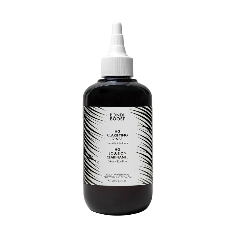 Scalp care is the new skincare! Give your scalp and hair a detox with the Aloe-based HG Clarifying Pre-Shampoo Rinse from BondiBoost. This clarifying rinse is specially formulated to tackle build-up from styling products, excess oil, and hard-water minerals, leaving your hair ultra-clean and healthier-looking. Think of it as your scalp’s weekly deep cleanse.