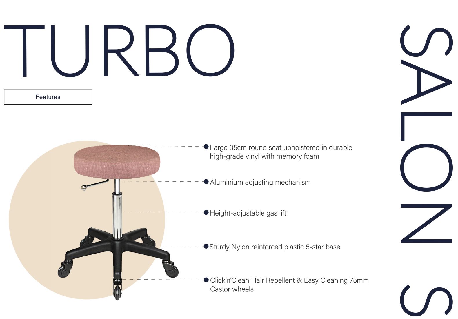 Turbo Dusty Pink Salon Stool - Black Base - Click'n Clean Castor Wheels